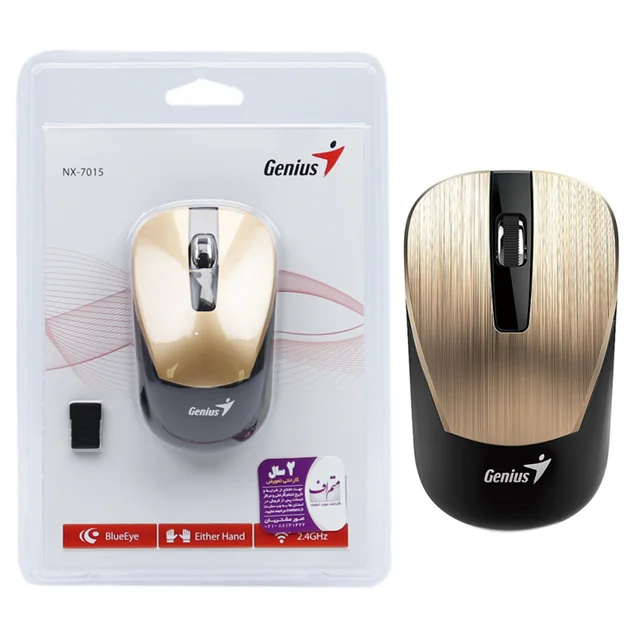 موس Genius NX-7015 بدون نیاز به اتصال با سیم توسط یک دانگل USB که در فرکانس ۲٫۴ گیگاهرتز اطلاعات را ارسال می کند به سیستم شما متصل می شود. برد این موس بی سیم در صورت عدم وجود مانع در برابر سیگنال ده متر می باشد و شما می توانید به راحتی از آن در هر محلی استفاده کنید. نکته دیگری که باید در هنگام تهیه یک ماوس به آن دقت کنید، میزان DPI ماوس است. این میزان نشاندهنده دقت نقطهبراینچ (Dots-Per-Inch) در ماوس است. دقت این موس ۱۶۰۰ DPI می باشد و با داشتن حسگر اپتیکال کارایی خود را به عنوان یک موس همراه به اوج می رساند. اندازه Genius NX-7015 یکی دیگر از مزیت های این موس جادویی می باشد و شما می توانید به راحتی آن را جابه جا کنید و با خود به هر محلی که به آن نیاز دارید ببرید و همین اندازه کوچک و وزن کم در کنار طراحی ساختار آن را برای استفاده در هر دو دست مناسب می سازد.