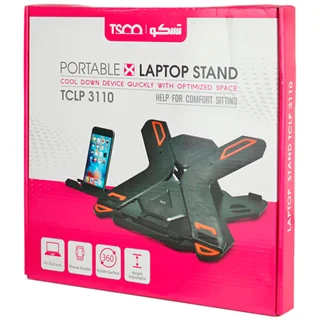 پایه نگهدارنده مدل TCLP 3110 برند تسکو از لوازم جانبی کاربردی برای قرارگیری لپ تاپ های سایز ۱۰ تا ۱۵٫۶ اینچی می باشد که از بدنه ای به جنس پلاستیک سخت ABS و مقاوم در برابر ضربه و فشار ساخته شده است. سطح رویی و همچنین لبه زیرین پایه، ضد لغزش طراحی شده است تا نگرانی از بابت سر خوردن دستگاه و خود پایه هنگام کار با لپ تاپ وجود نداشته باشد. این استند از امکان چرخش ۳۶۰ درجه ای کفی و ۷ حالت مختلف جهت تنظیم ارتفاع برخوردار است تا کاربر براساس نیاز، زاویه مورد نظر را برای استفاده بهتر و مانع شدن از خستگی در اثر کاربرد طولانی مدت انتخاب نماید. همچنین TSCO یک فضای مناسب به عنوان هولدر گوشی موبایل نیز در کنار این استند قرار داده که کارایی این محصول را دو چندان کرده است. با وجود فضای خالی ایجاد شده در سطوح زیر کفی، فرآیند خنک شدن و دفع گرمای حاصل از فعالیت های سنگین لپ تاپ به طور مناسب انجام می گیرد.